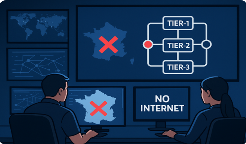 In the French Presidential Elections, the ISP Orange have been ordered by the national authority to implement a 4-day disconnect of Internet connectivity in France, which is deemed under threat from separatist groups.